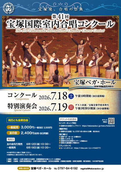 | その他詳細 | 【前売販売所】 宝塚ソリオホール(宝塚市文化財団) 宝塚ベガ・ホール 宝塚文化創造館 宝塚市立文化芸術センター 【オンラインチケット予約】 ご予約には宝塚市文化財団友の会へのご入会、またはオンライン会員登録(登録無料)が必要です。 この機会にチケットの割引・先行予約ができる友の会に、ぜひご入会ください。 |